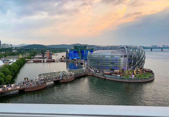 Arrivées à la hauteur du pont que l’on devait traverser pour rejoindre les îles flottantes, nous avons rencontré deux jeunes femmes d’origines américaines qui étaient en Corée du Sud pour deux jours, nous avons parlé avec elles et sommes devenues amies en quelques minutes.