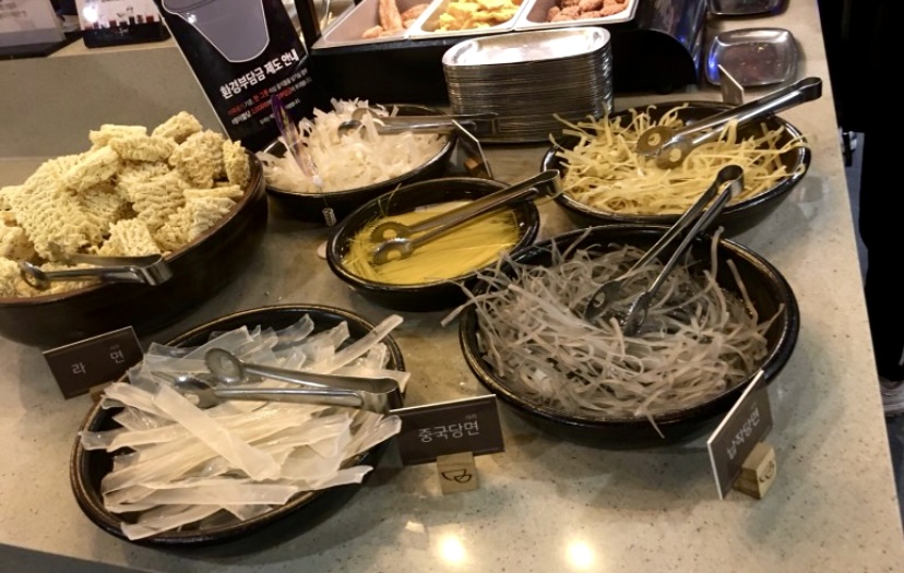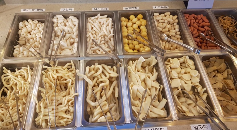 Après, vous pouvez chercher les ingrédients. Il y a toutes les sortes de Tteokbokki : nature, fromage, petits, grands… Des gâteaux de poissons, pousses de soja, champignons, saucisses, poireaux, ramens… (vous pouvez aussi demander un supplément fromage pour quelques milliers de wons en plus)