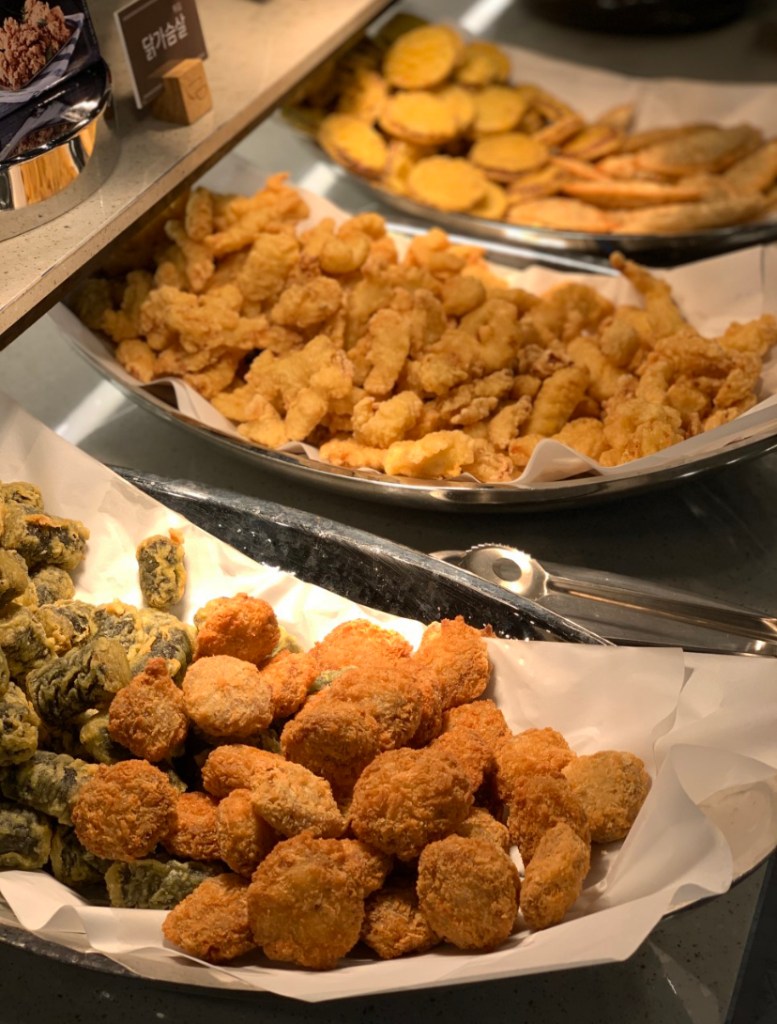 Il y a aussi du poulet, des gâteaux de poissons, plusieurs autres accompagnements et des boissons à volonté :