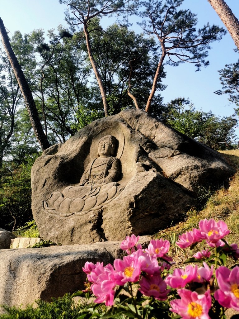 Bref, une fois arrivé à la sortie qu’elle nous avait indiquée, nous avons dû partir prendre un bus (le 701) car nous n’étions pas encore à l’endroit souhaité. Nous avons dû faire une bonne dizaine de minutes pour nous arrêter à Hanago, (samcheon-sa jingwansaib-gu). Dans le bus, il n’y avait que des randonneurs équipés de leur sac à dos, chaussures, casquettes, vêtements de sport. Nous nous étions habillées de simples shorts en jean, t-shirt et n’avions même pas une bouteille d’eau.